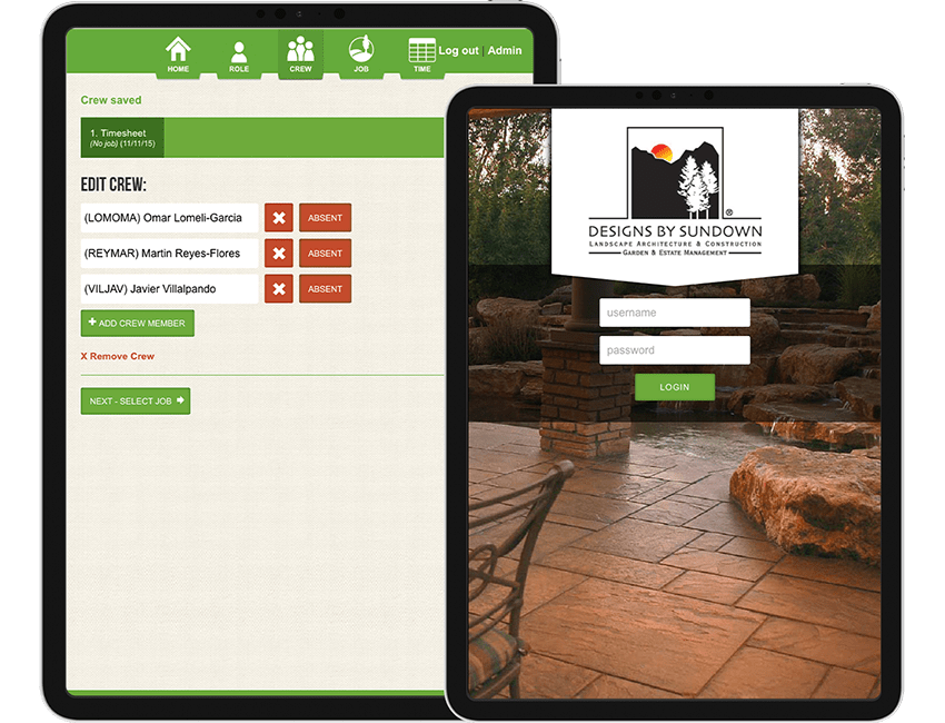Designs By Sundown (DBS) is a premier Denver landscape architecture, construction and maintenance firm specializing in high-end residential and commercial properties. They utilize numerous crews at multiple locations and they wanted an easy way for the foreman on a project to enter the hours worked for each crew member and to submit timesheets from the field.