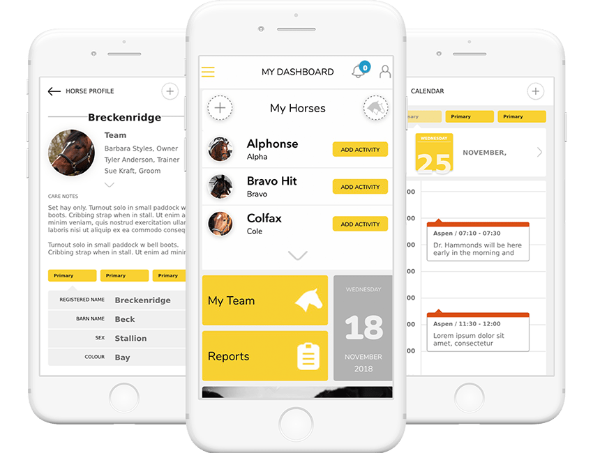 • A comprehensive, mobile first dashboard for the whole stable — horses, team members and activities